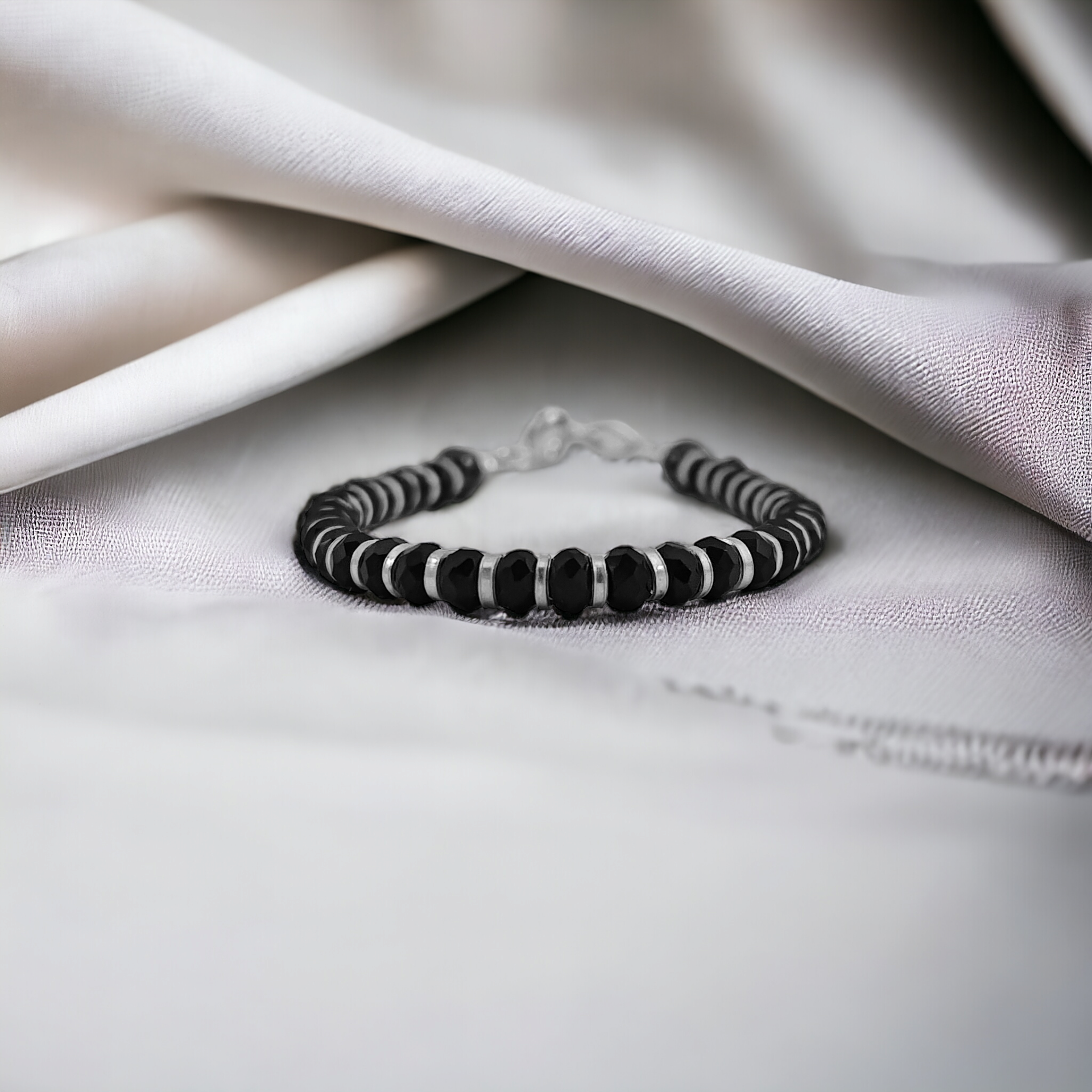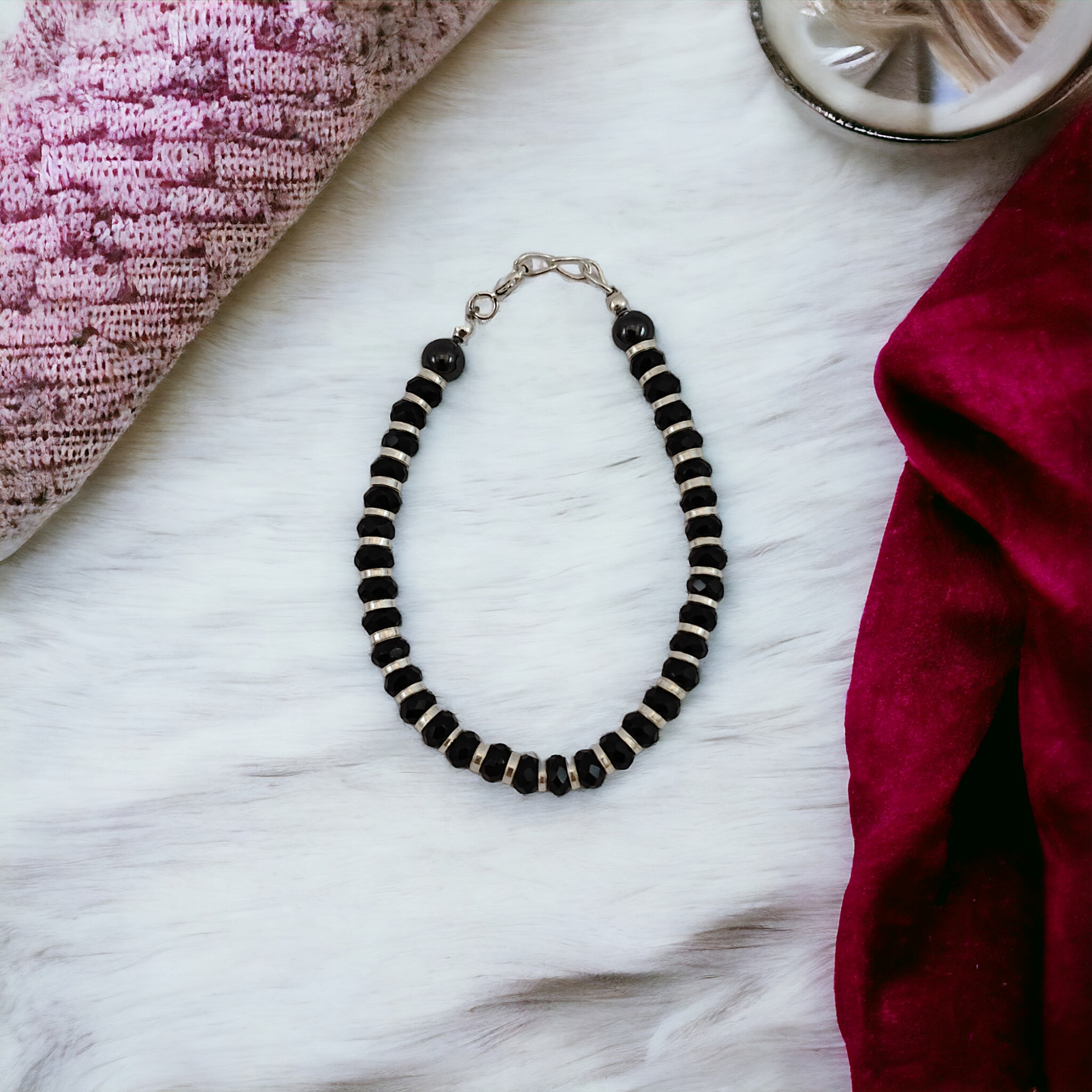 👁️ Adorable evil-eye charm nestled among silver beads—classic nazariya symbolism in a minimalist, baby-safe design that adds subtle spiritual flair