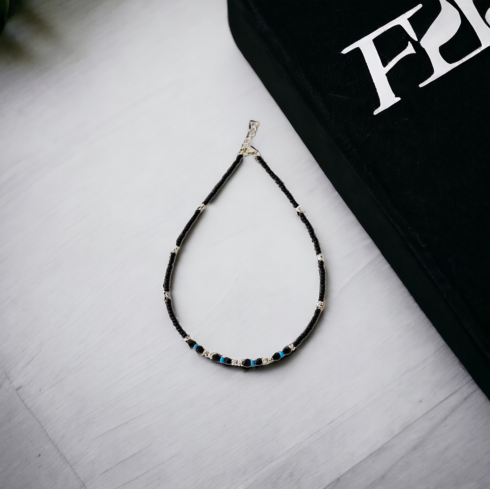 🧿 Classic nazariya evil-eye charm embedded among contrasting beads—ancient symbol for deflecting negativity and attracting good vibes; made for those who love meaning with style