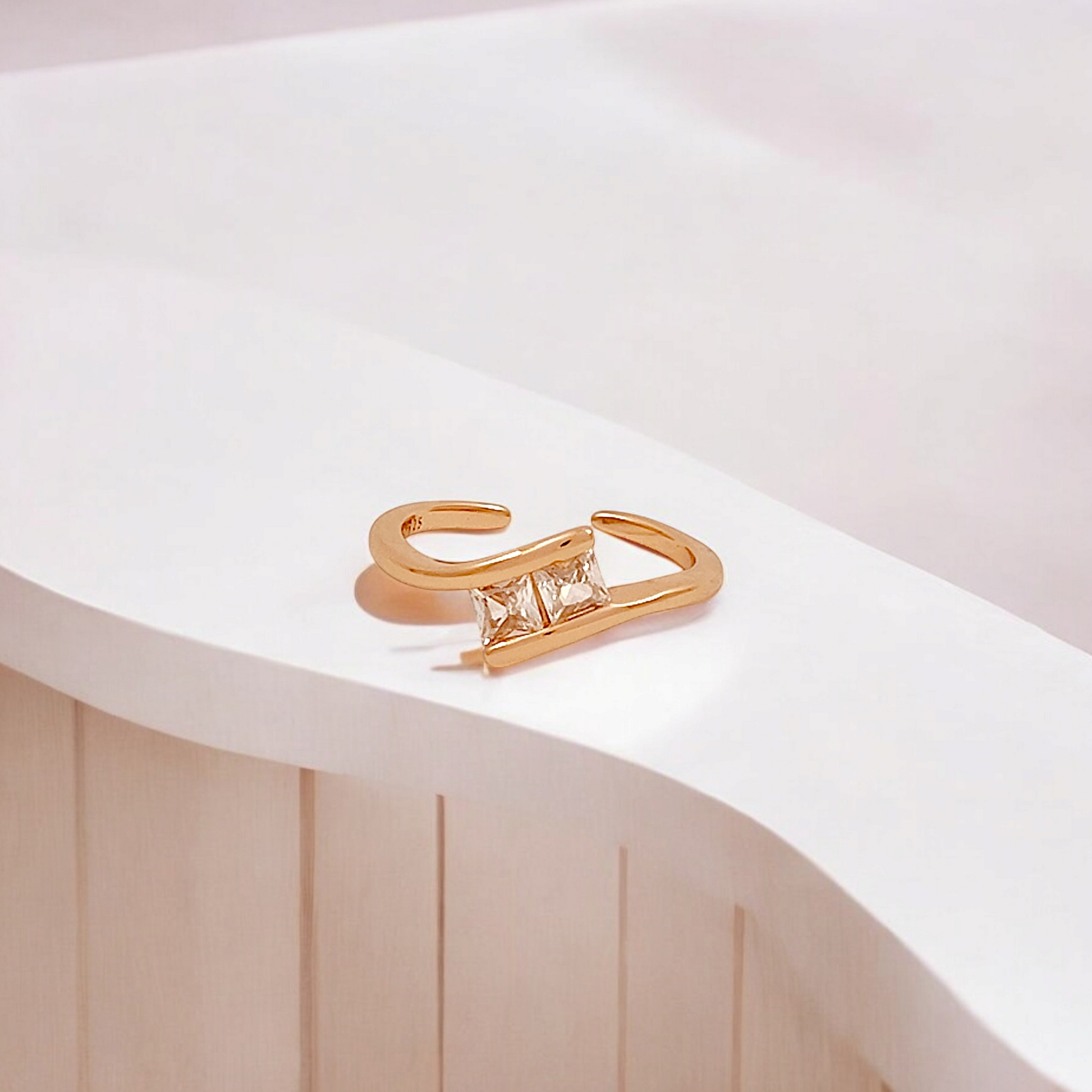 💖 Duo princess-cut rose gold-plated stones – double the glam with that rosy luxe shine