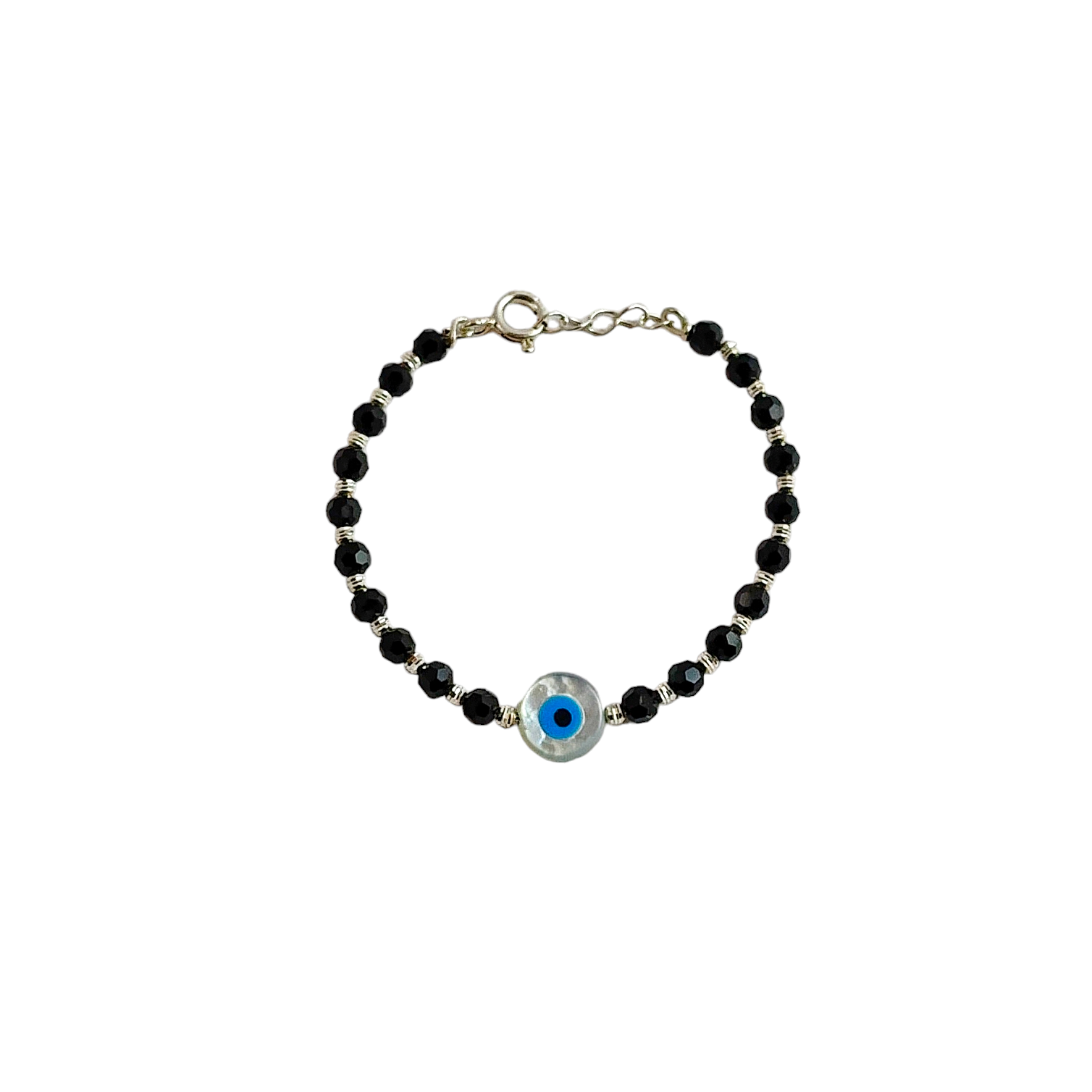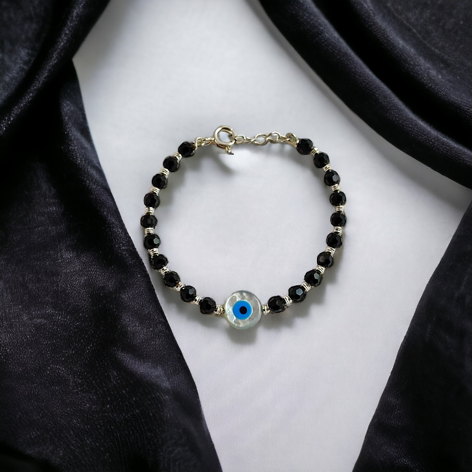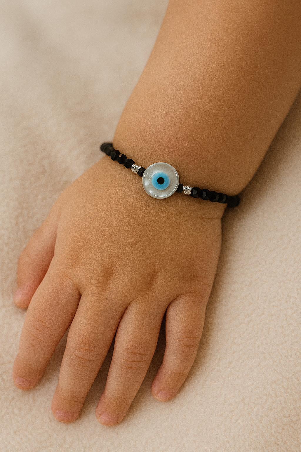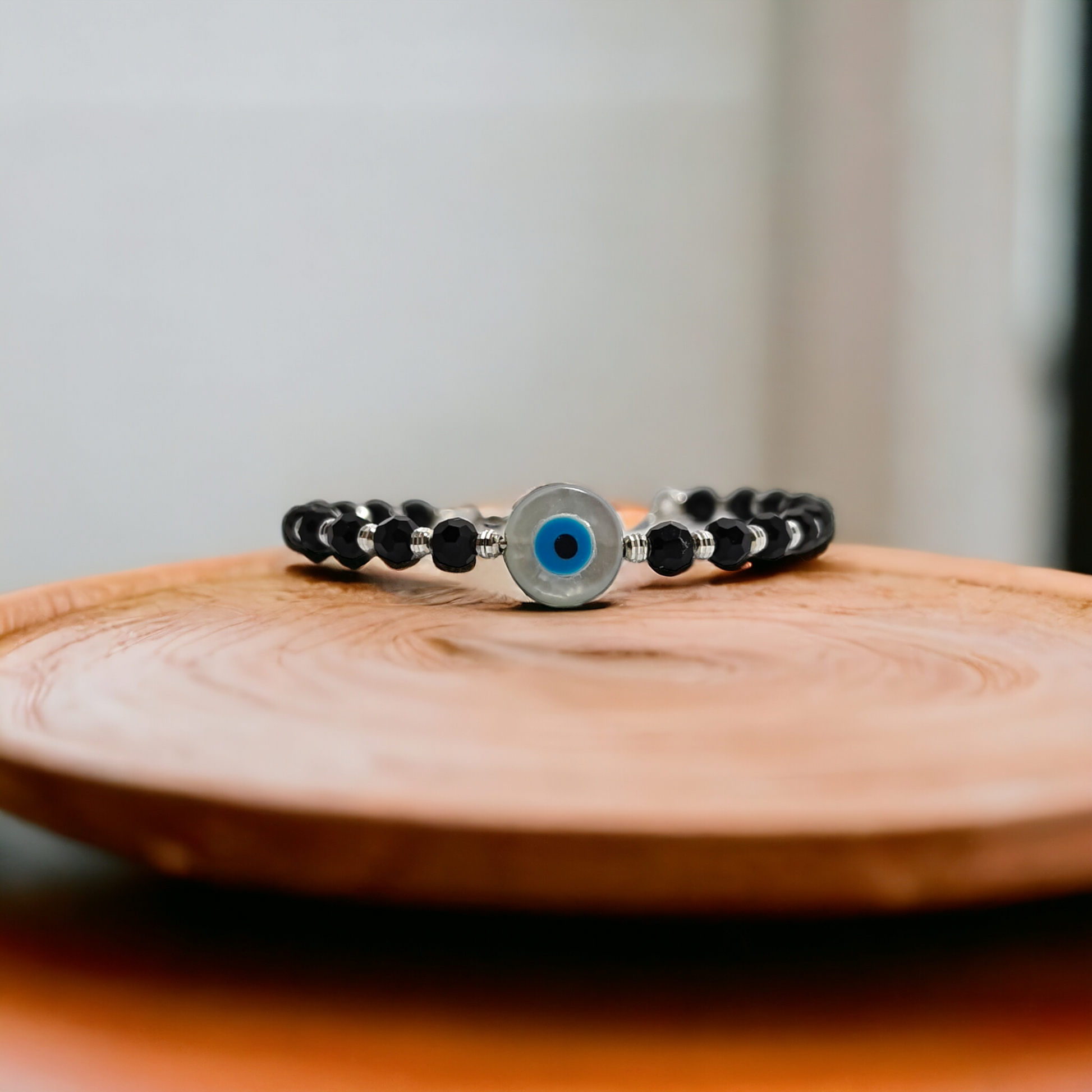 🧿 Classic evil‑eye charm nestled among black beads—the timeless nazariya symbol believed to ward off envy and negative vibes—perfect for streetwear meets spiritual-core style