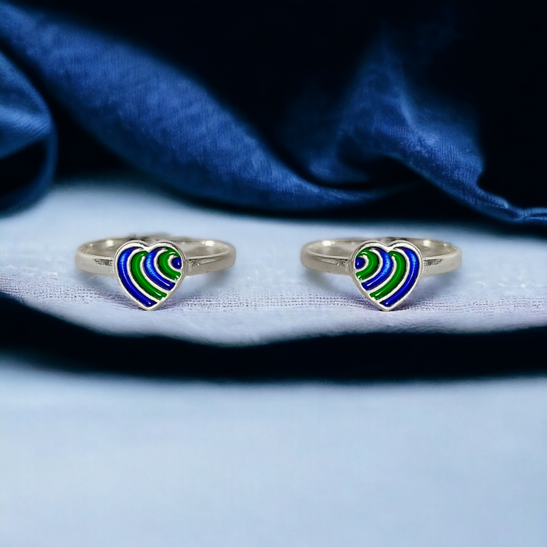 Green Blue Enamel Heart Toe Ring