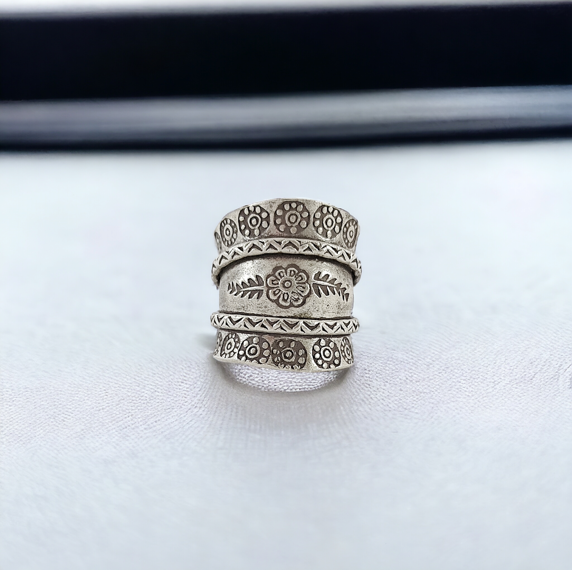 🌀 Three-tiered layered band design – modern, minimalist, and bold, offering that stacked look in one artisan piece