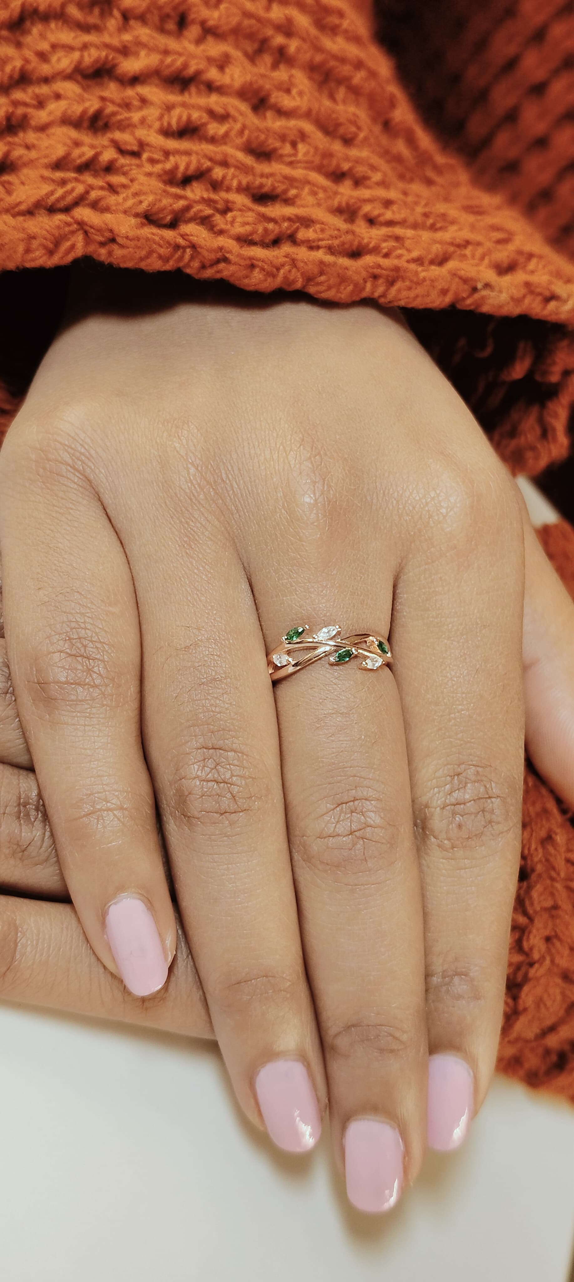 💚 Delicate leafy vine pattern accented with green stones – nature-meets-luxe in a fresh, eye-catching style