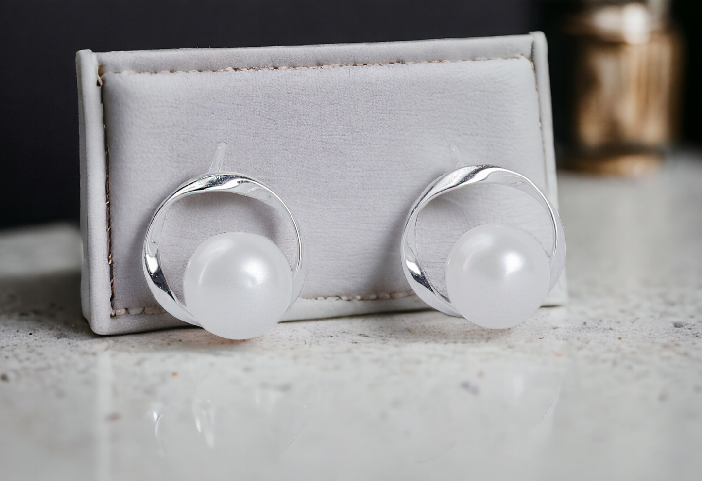 These exquisite studs feature lustrous pearls set in shimmering silver, adding a touch of sophisticated glamour to any outfit. Perfect for special occasions or everyday wear, these studs will elevate your style to new levels of refinement.