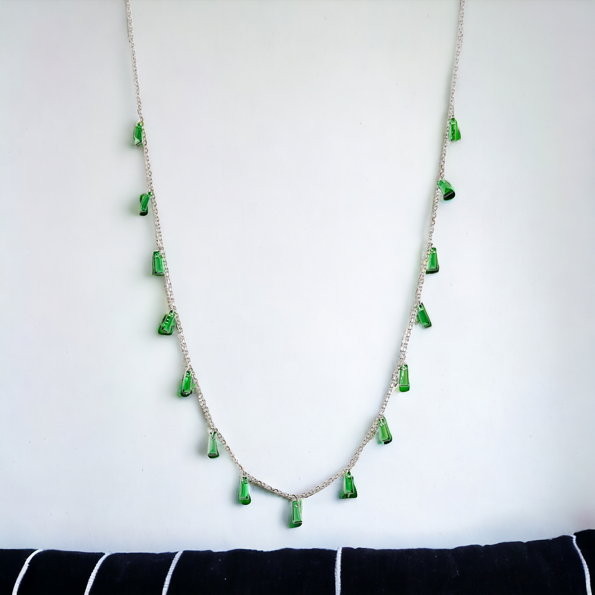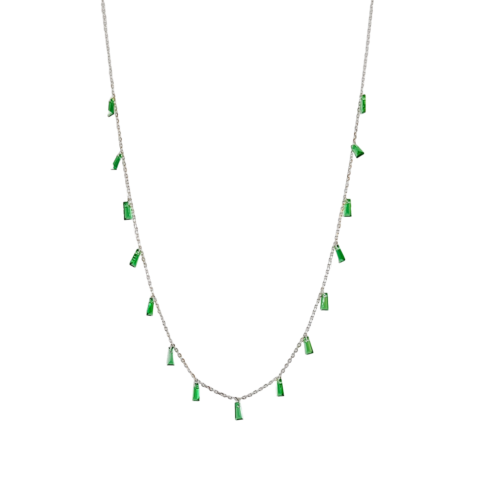 🌱 Centerpiece featuring a rich green gemstone pendant (emerald/tourmaline-style) set in sleek mixed-metal bezel—vibrant tone that channels summer’s bold-green gemstone trend