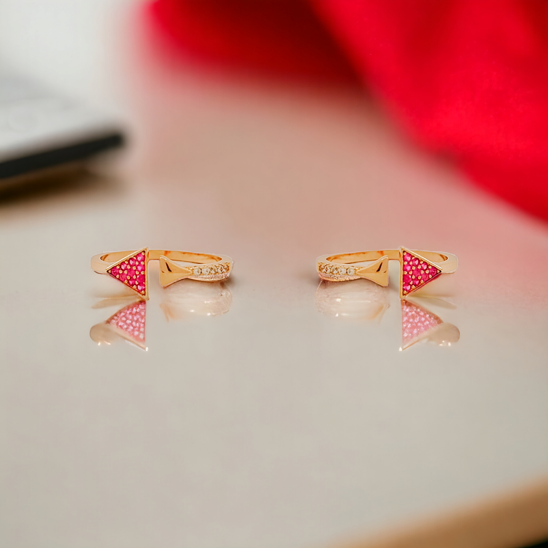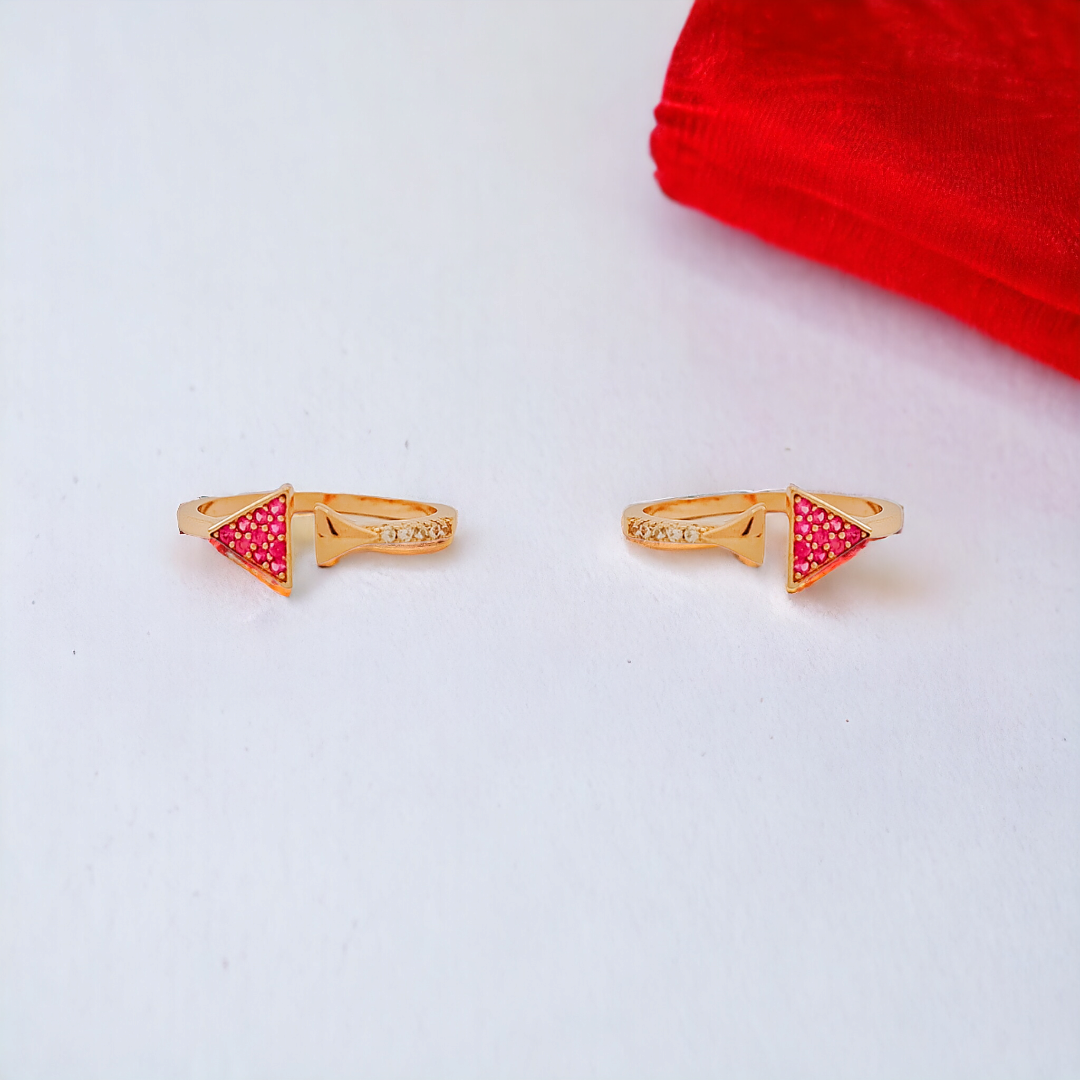 ❤️🔥 Features twin ruby-red CZ triangles adjoined on an open adjustable band—adds artful gemstone geometry and bold foot-game flair